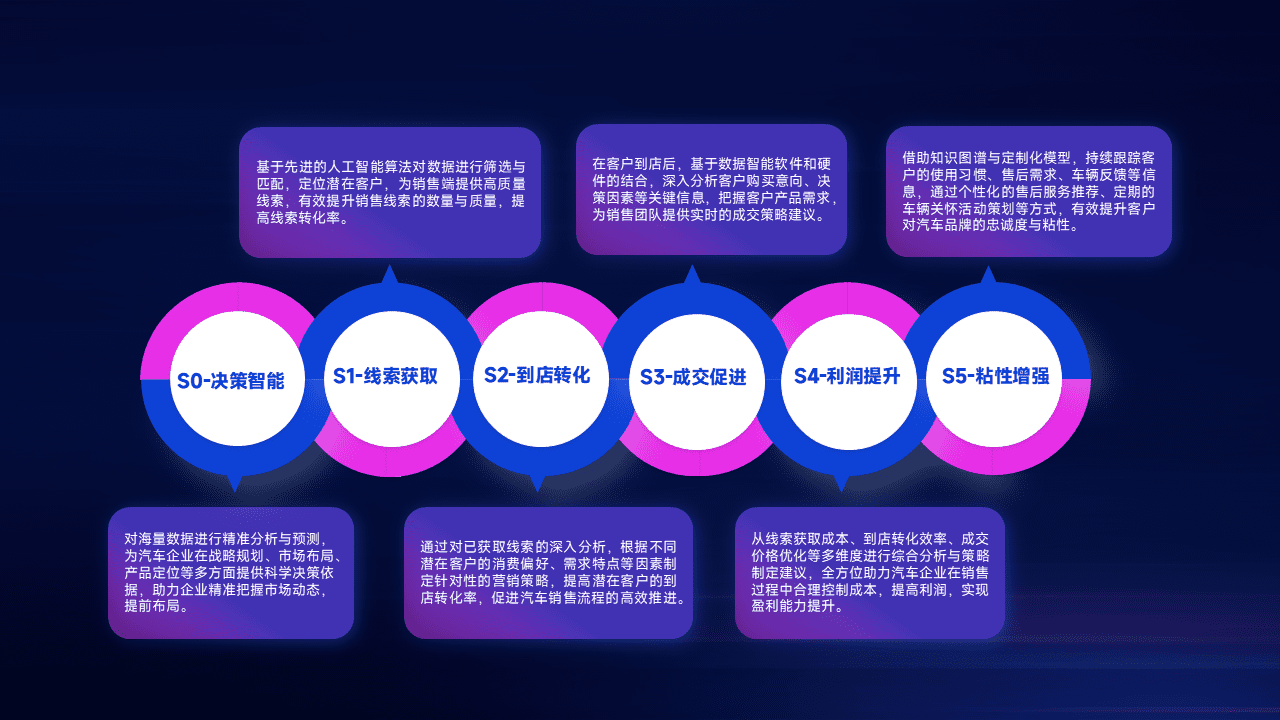 通过拓宽潜在客户来源、、、优化线索分配并提高到店转化率,,,以增强销售效率。。。。同时,,利用线索数据不断优化分析模型,,,有效提升转化率,,,扩大营销影响力。。